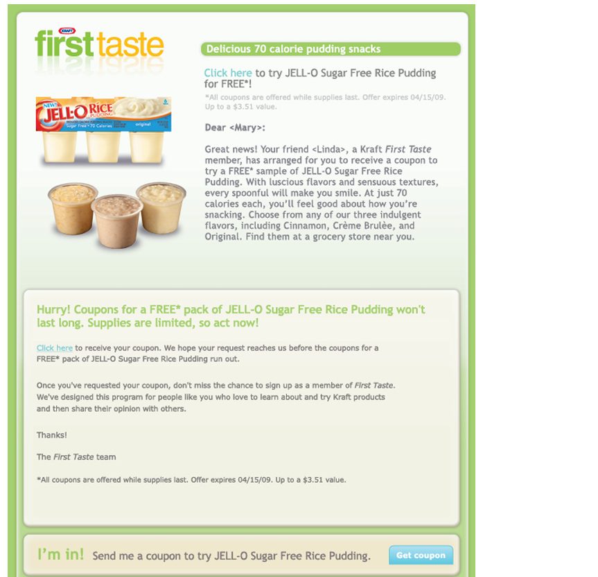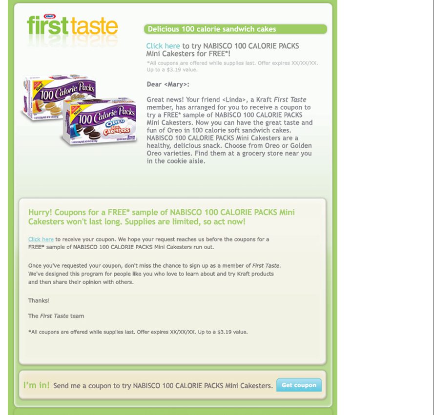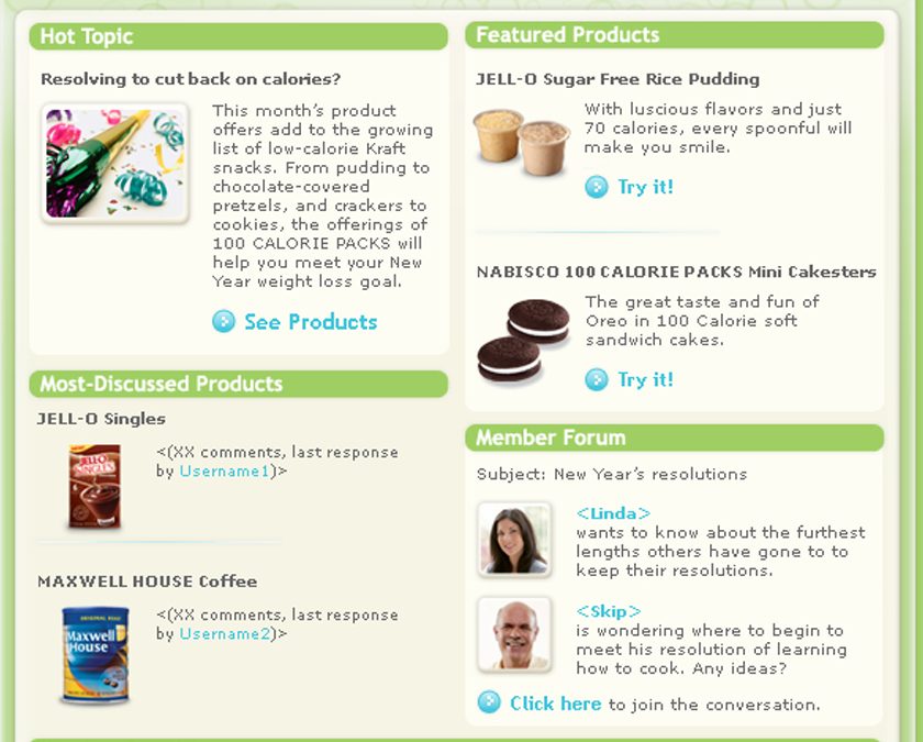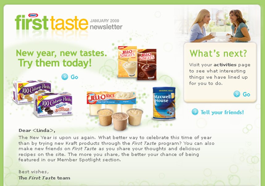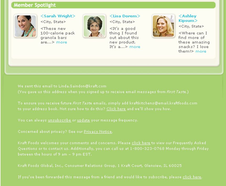 Company: Kraft “First Taste” Program – Enables consumers to sample new products, provide feedback, and engage in the development process.